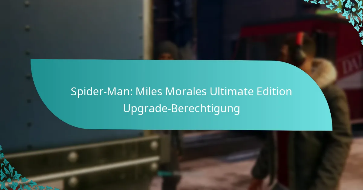 Um auf die Spider-Man: Miles Morales Ultimate Edition upzugraden, müssen die Spieler bestimmte Kriterien erfüllen, die sich auf ihren bestehenden Spielebesitz und die regionale Verfügbarkeit beziehen. Dieser Upgrade-Prozess ist für berechtigte Spieler gedacht, die bestimmte Editionen des Spiels besitzen und die Kontovoraussetzungen einhalten, sodass sie auf exklusive Funktionen und zusätzliche Inhalte zugreifen können, die ihr Spielerlebnis verbessern.